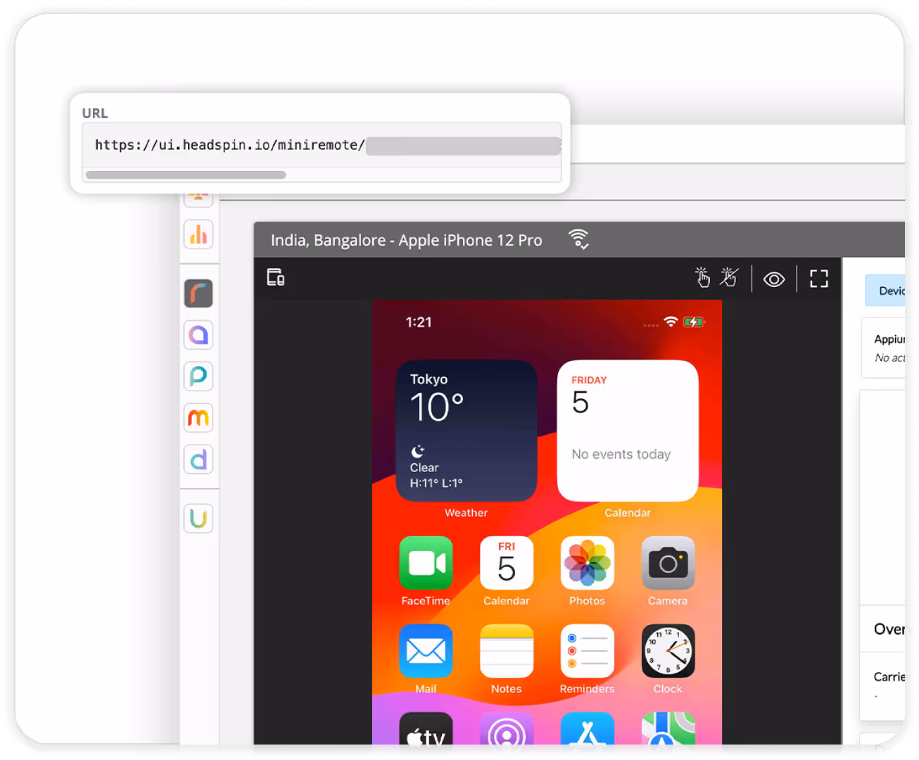 Ensure your app works when users rotate their screens mid-task, switch between different virtual keyboard types, or use microphones and speakers. Mini Remote lets teams perform these checks directly on handheld devices, offering a more realistic experience than testing from platform dashboards.