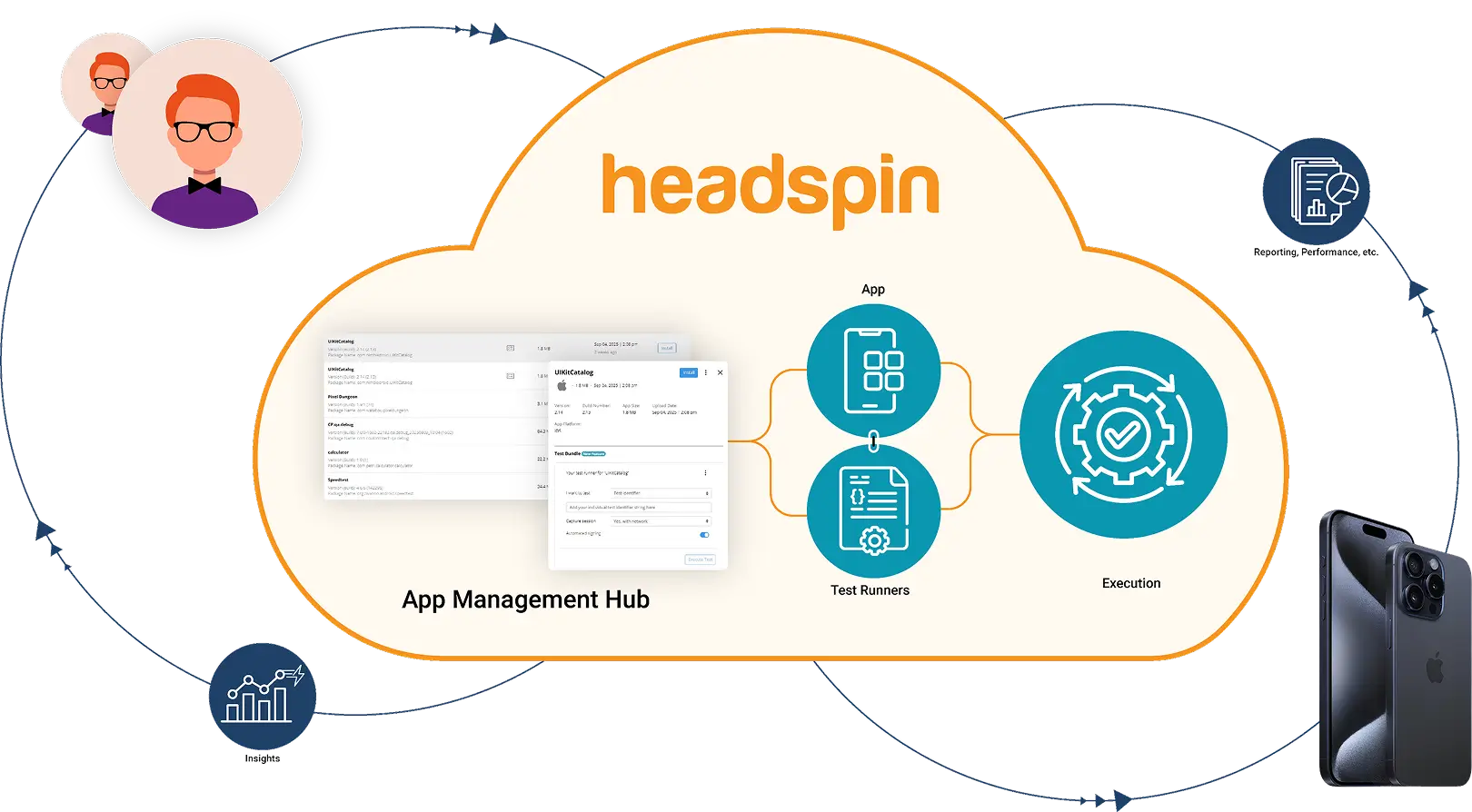 HeadSpin Test Execution Management (TEM) centralizes mobile test execution in the cloud, allowing teams to upload apps and tests to a single platform and instantly execute them directly from the cloud.